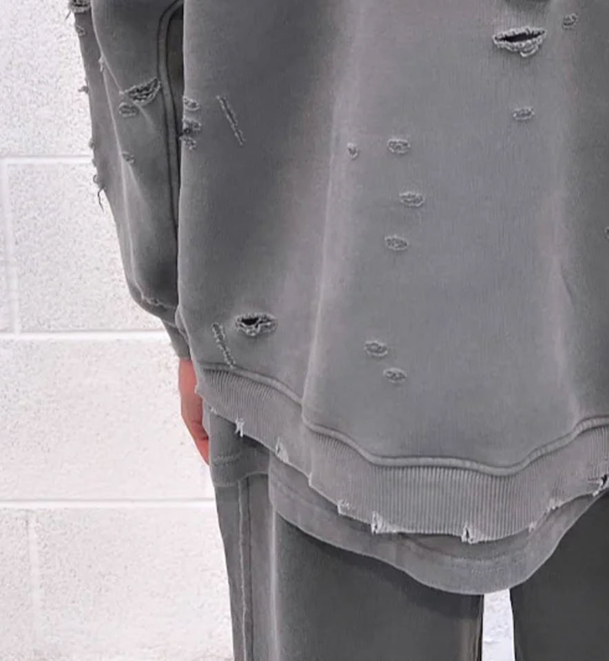 High Quality 500 GSM Hoodie Acid Wash Distressed Patch Patchwork Embroidery Unisex Hoodie