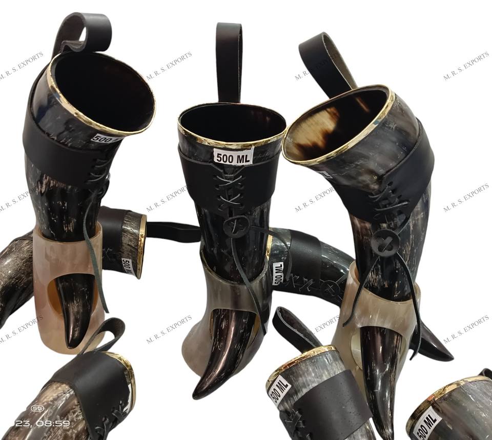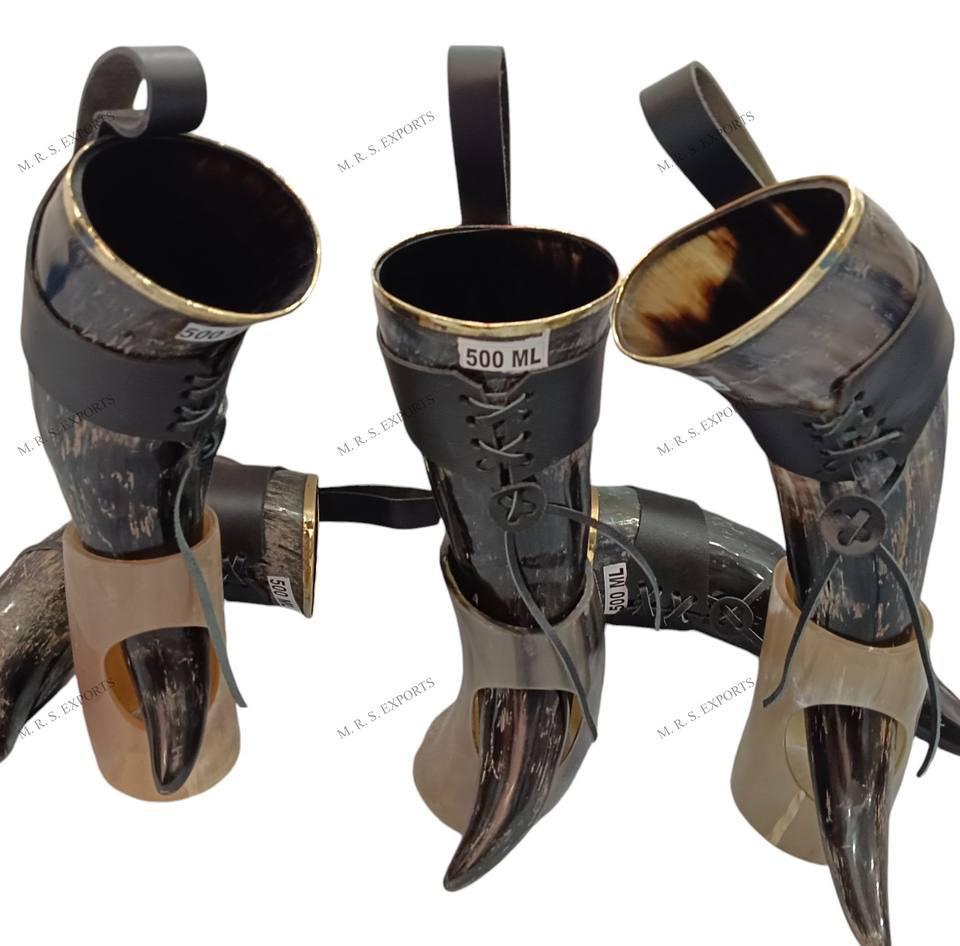 High Quality 500ml Buffalo Horn Viking Mug with Leather Holder and Stand Polished Natural Finish Best Bulk Prices
