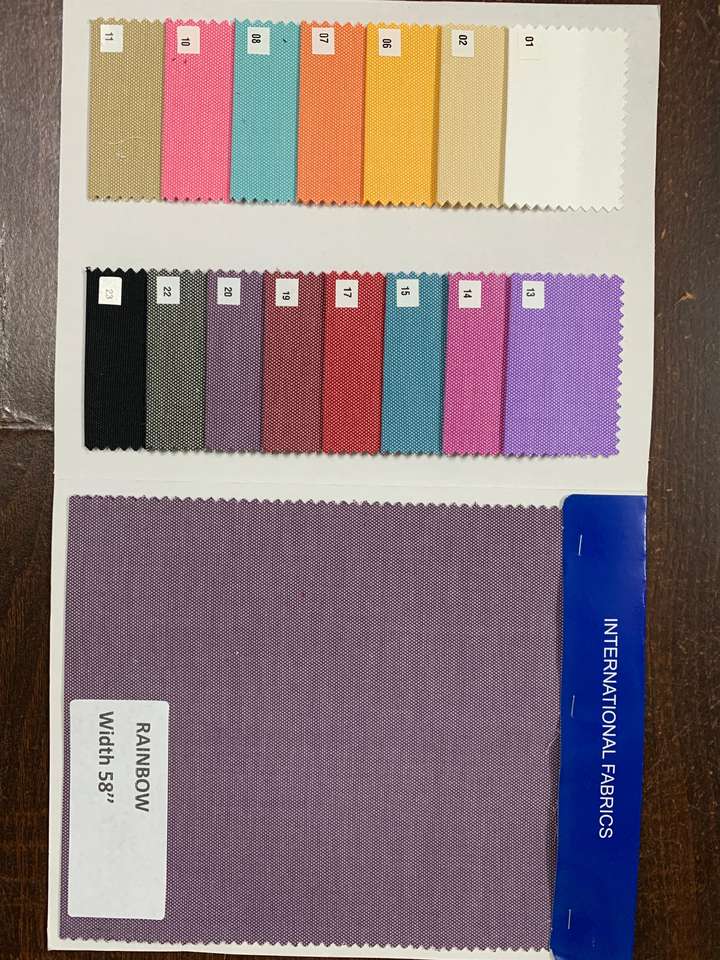 High Quality 58 Width Rainbow Shirting Fabric 120gsm Plain Dyed Garment Fabric for Men Women & Boys in Bulk Quantity