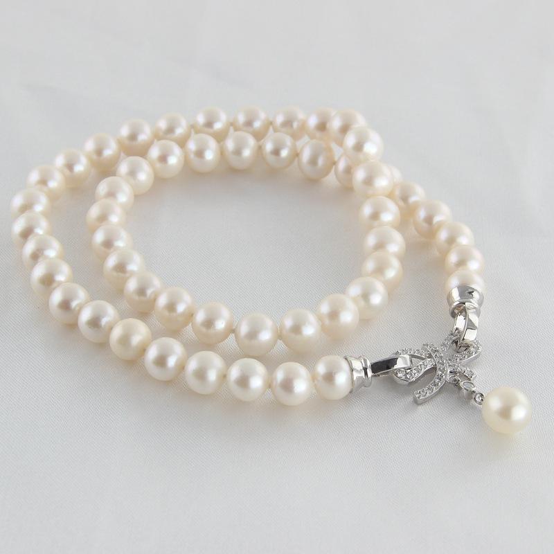 High Quality 6-7mm Round Freshwater Pearl Necklace Non-Nuclear with Star Buckle Magnetic Clasp Good Clean Quality