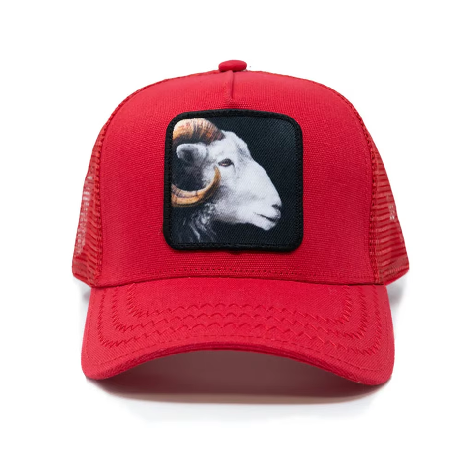 High Quality 6 Panel Flat Brim red custom logo goat Snapback Caps Outdoor Baseball/trucker Hat mesh Adjustable Size caps for Men