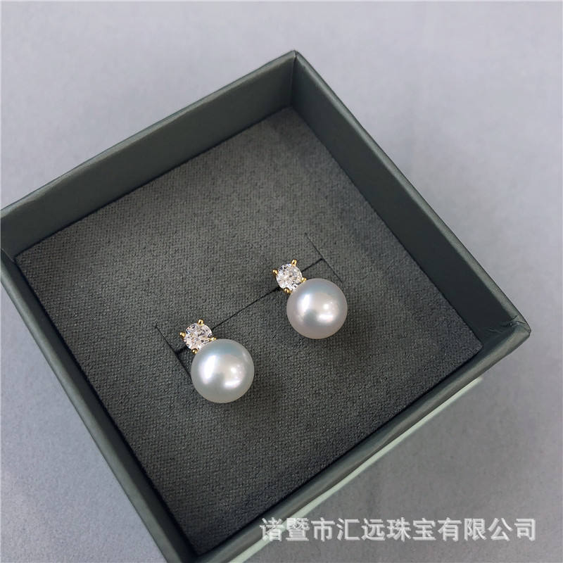 High Quality 7-9MM Freshwater White Pearl Earrings Versatile 925 Silver Queen Style Round Jewelry