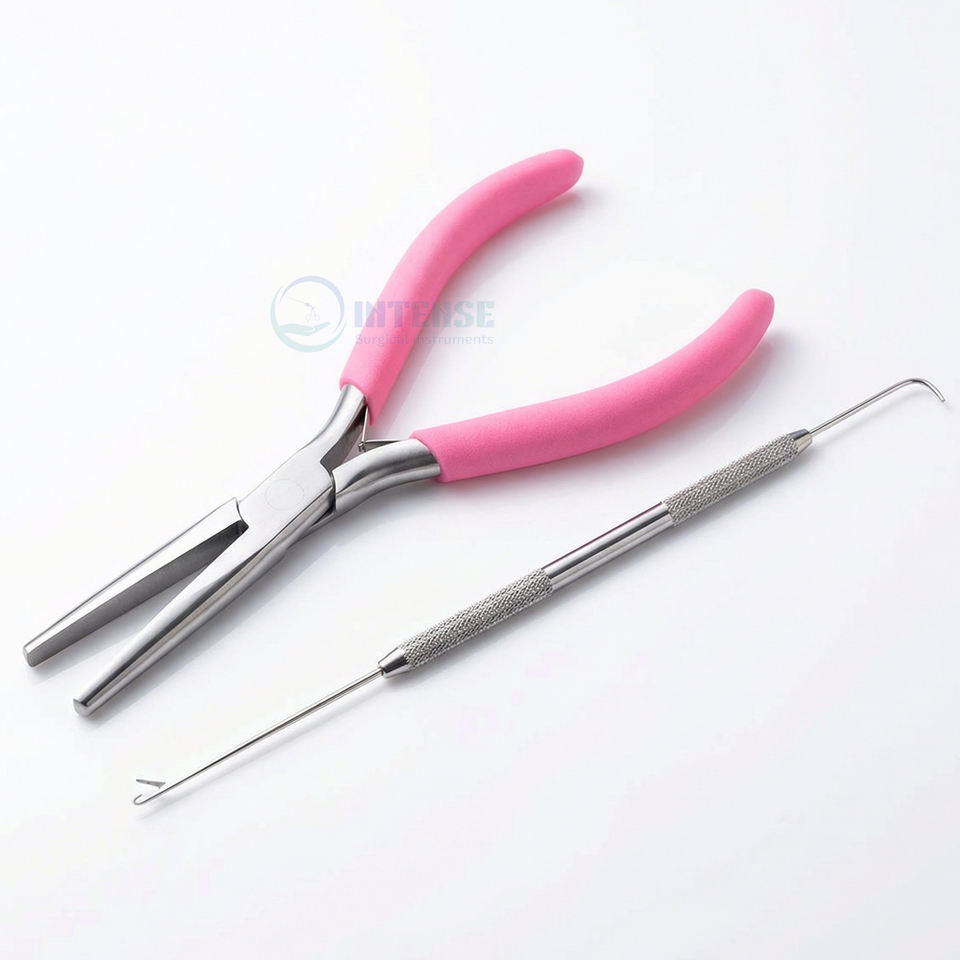 High Quality INTENSE SURGICAL 7 Inch Hair Extension Long Nose Flat Mouth Pliers Pink Handle Lightweight Reusable Precision