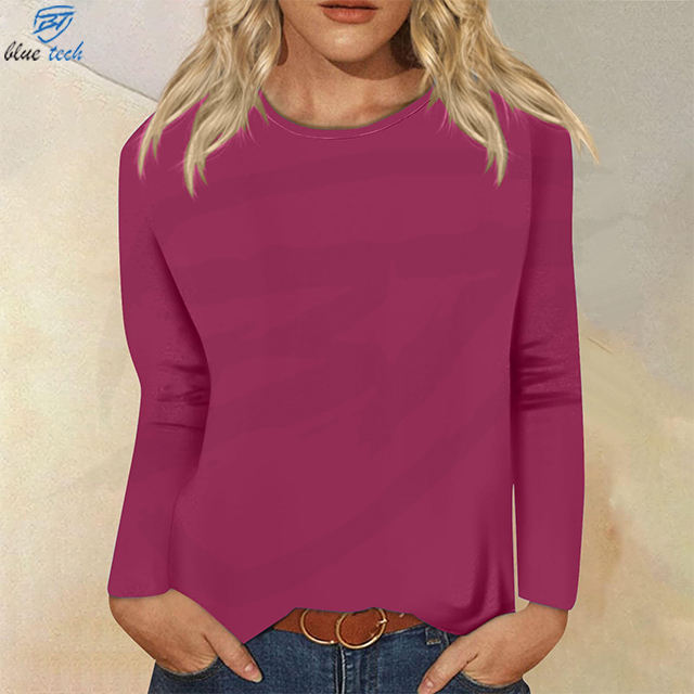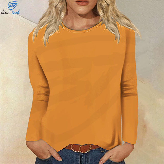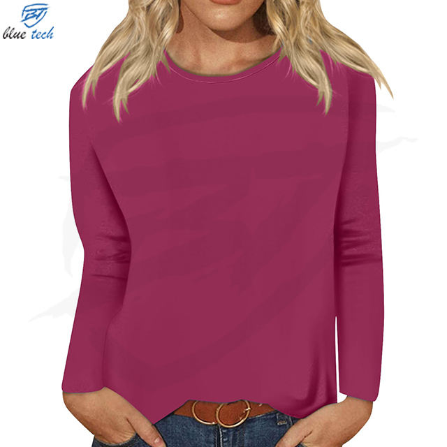 High Quality 70%Cotton 30%Polyester Long Sleeve Running Shirt Women Plain Print Full Sleeve Gym Top Women