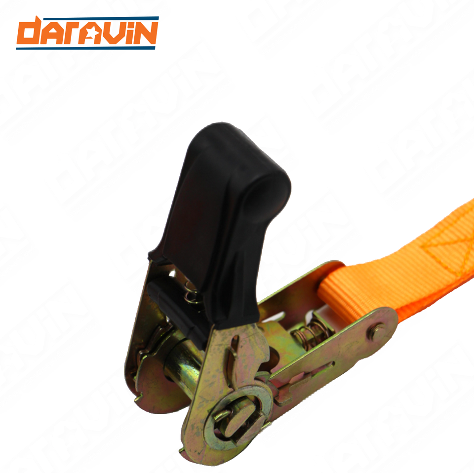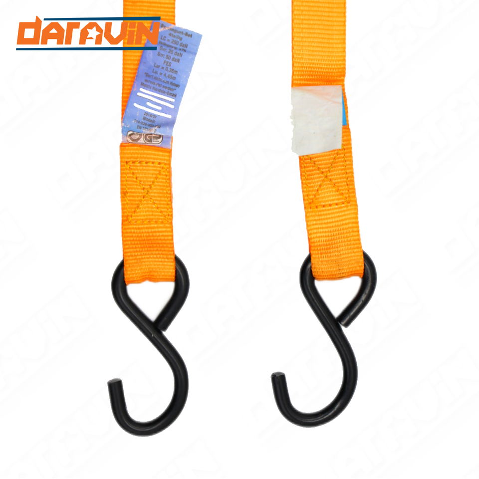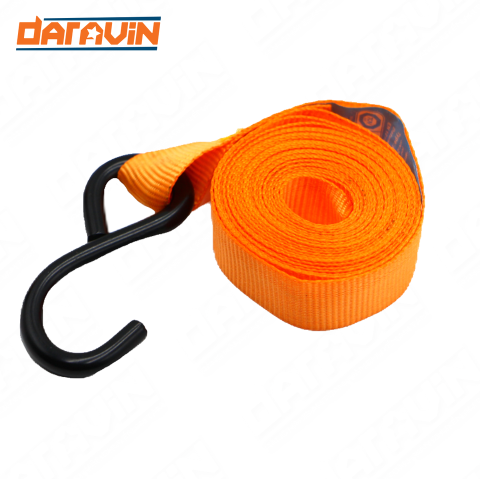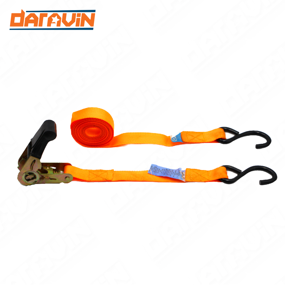 High Quality 800KGS 1760LBS 5m 1inch Polyester Tie Down Ratchet Straps Covered Rubber with S Hooks for Cargo Lashing