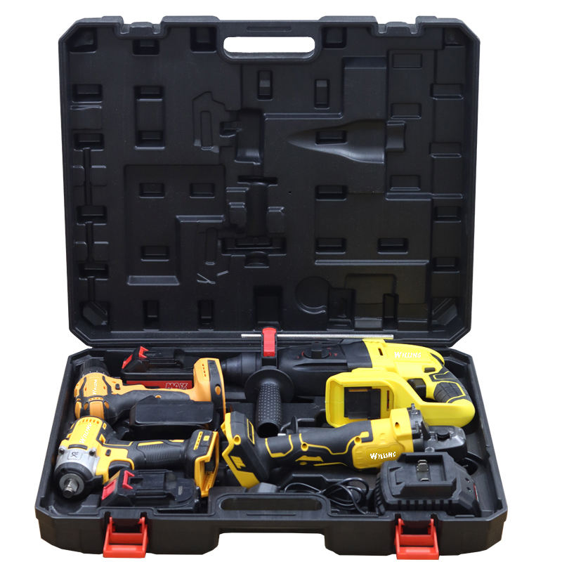 Wholesale Price 18v 4 Pieces in 1 Combo Electric Impact Wrench Angle Grinder Hammer Drill Cordless Set Professional Tool Kit