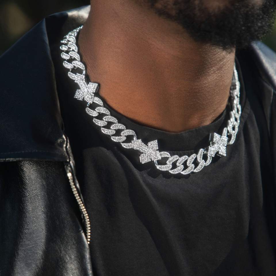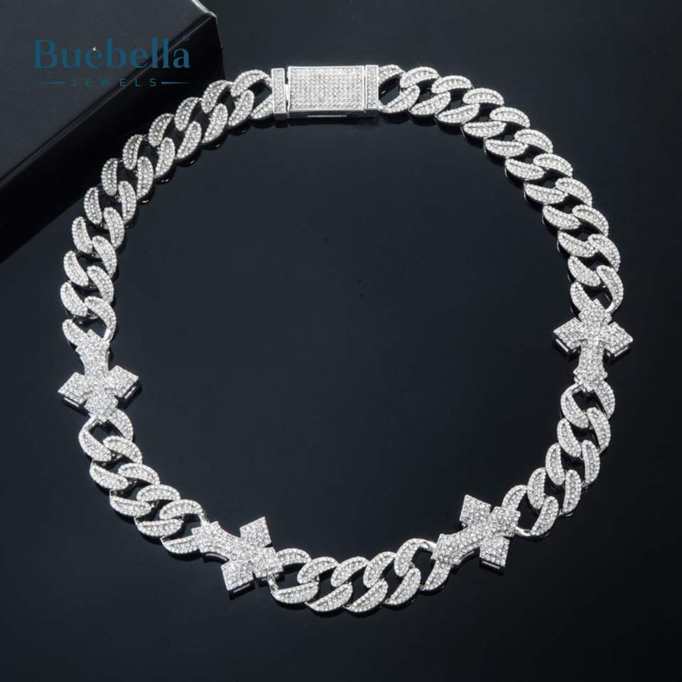 High Quality 925 Silver 14K White Gold-Plated 16mm Heavy Fully Iced Cuban Link Cross Chain for Men Premium Necklaces