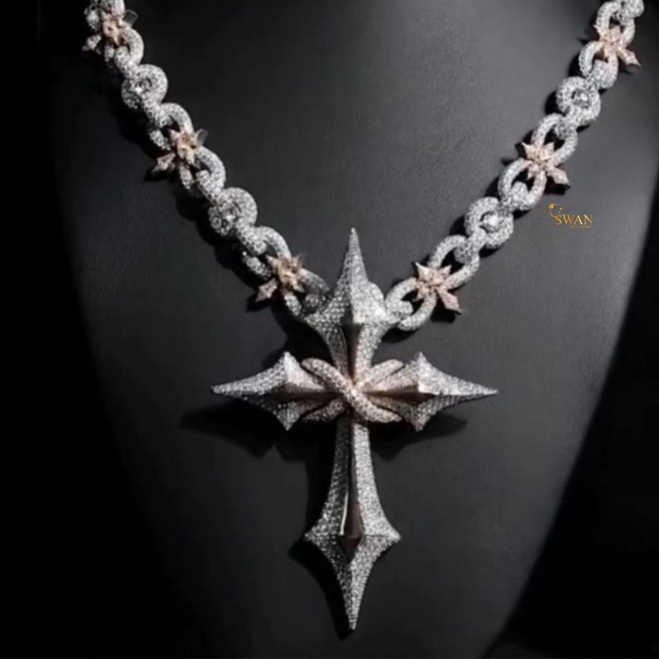 High Quality 925 Silver Cross Pendant Fully Iced Out with Sparkling Lab Grown Diamonds Star Chain Hip Hop Jewelry Gift for Men