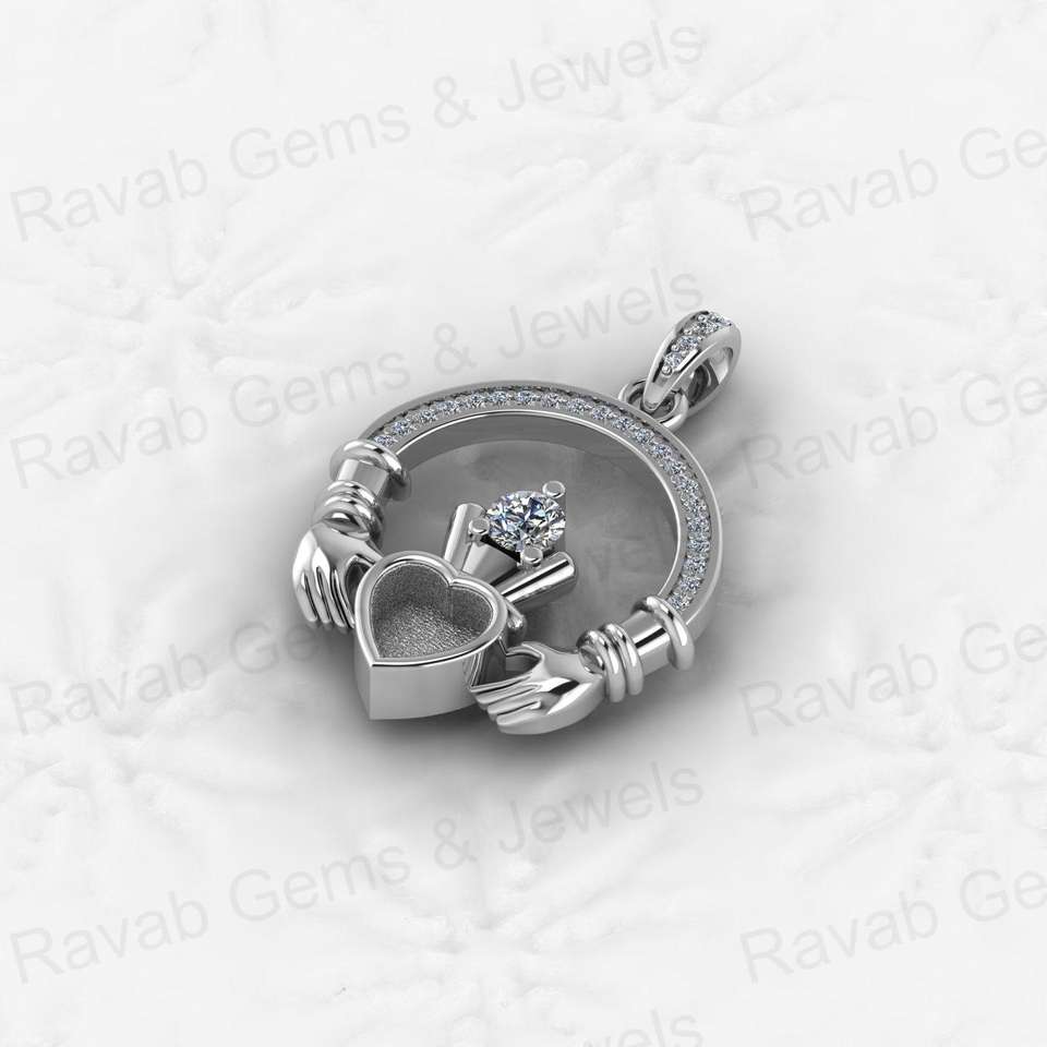 Silver Semi Mount Setting Iris Celtic Claddagh Heart With CZ PendantProduct Name