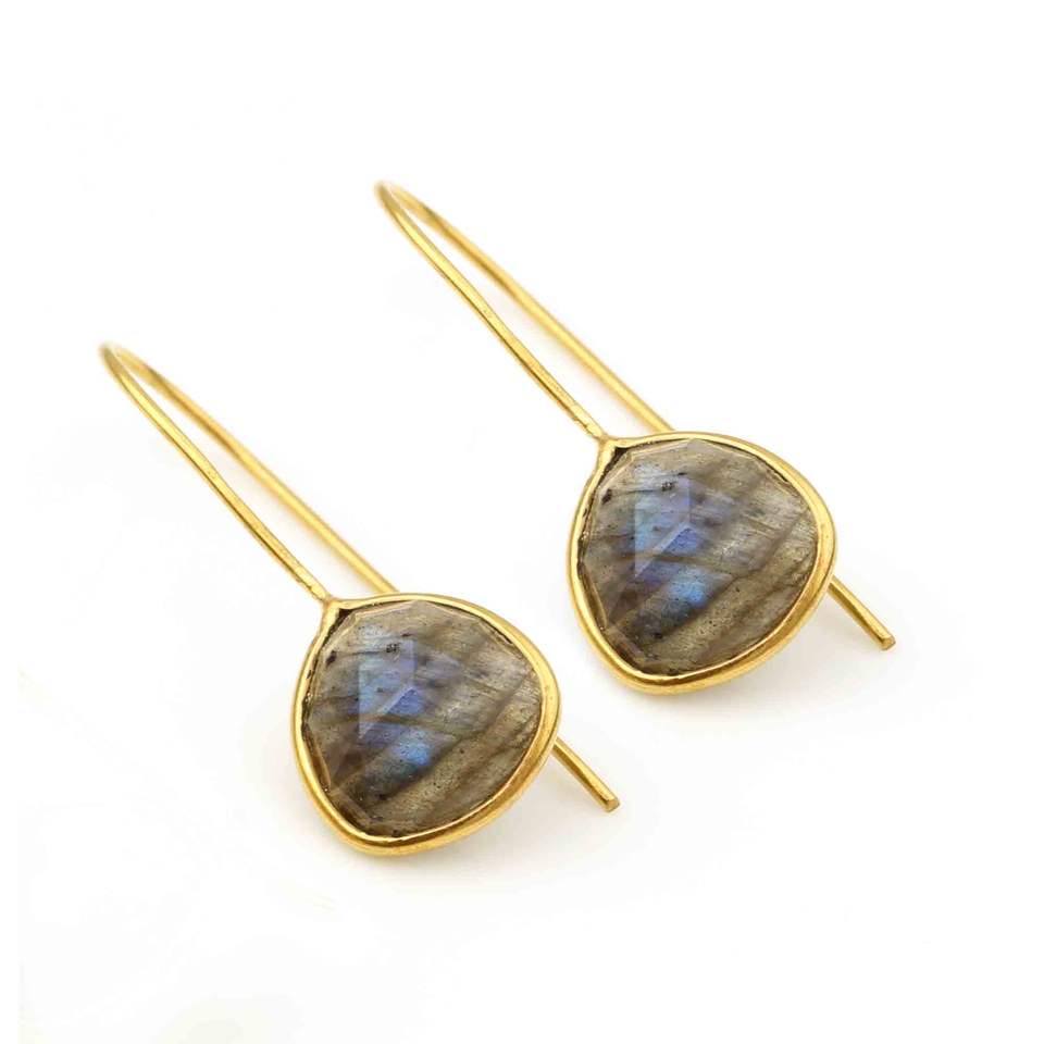 Product Name:Natural Labradorite 925 Sterling Silver Gold Plated Dangle Earring