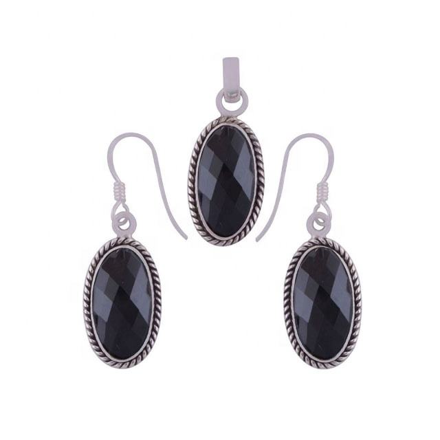 High Quality 925 Sterling Silver Black Onyx Gemstone Earring Pendant Set Vintage Wholesale for Woman's Engagement Anniversary