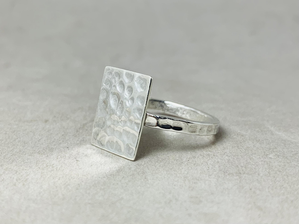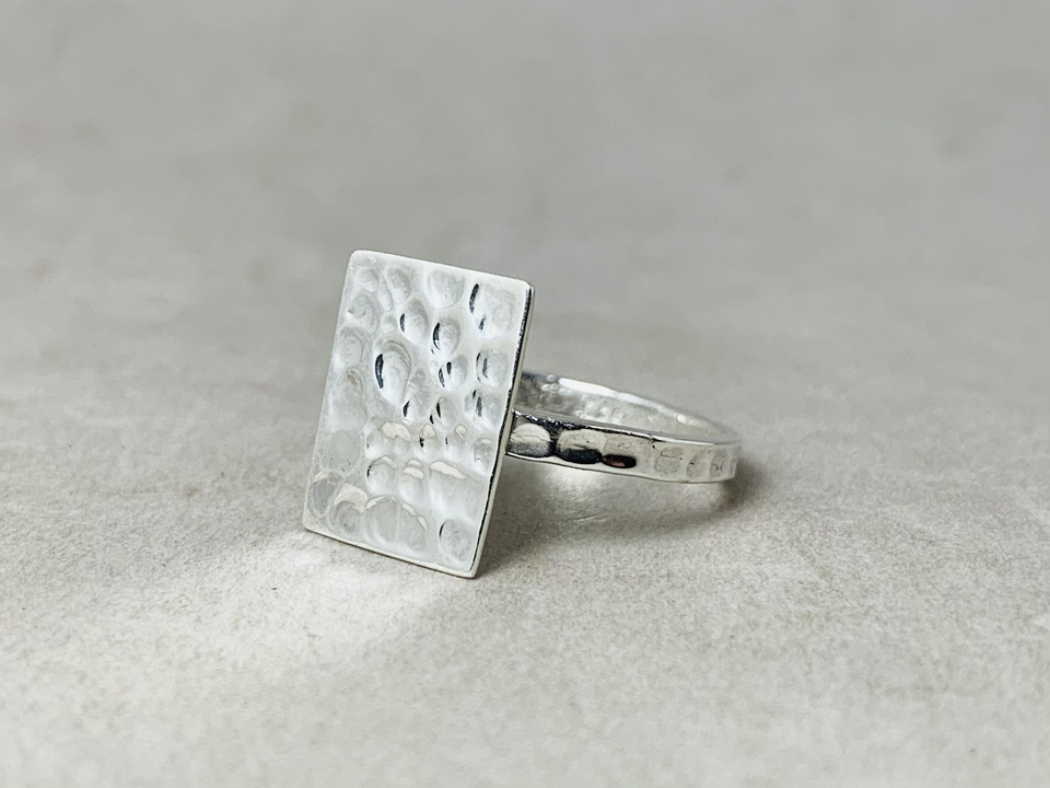 High Quality 925 Sterling Silver Hammered Cushion Shape Ring Simple Design Handmade Fine Jewelry for Women Wholesale Price