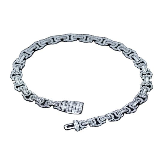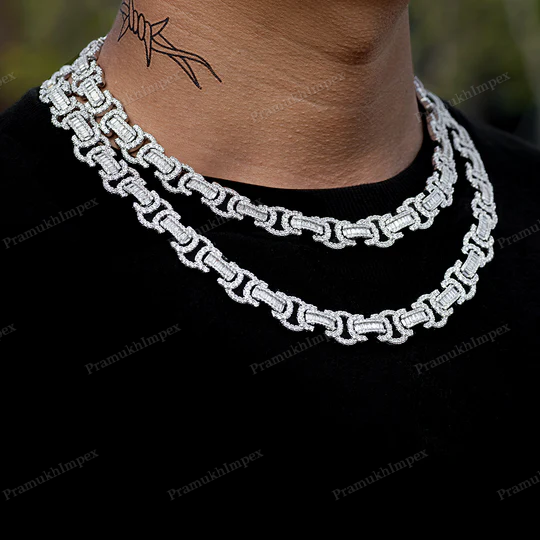 High Quality 925 Sterling Silver Hip Hop Full Iced 15MM Width GRA Certified Byzantine Link Chain White Gold Plated Moissanite
