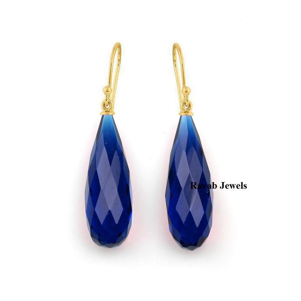 High Quality 925 Sterling Silver Drop Earrings Long Dangle Design Iolite Quartz Gemstone Gold Plated Handmade Wedding Jewelry