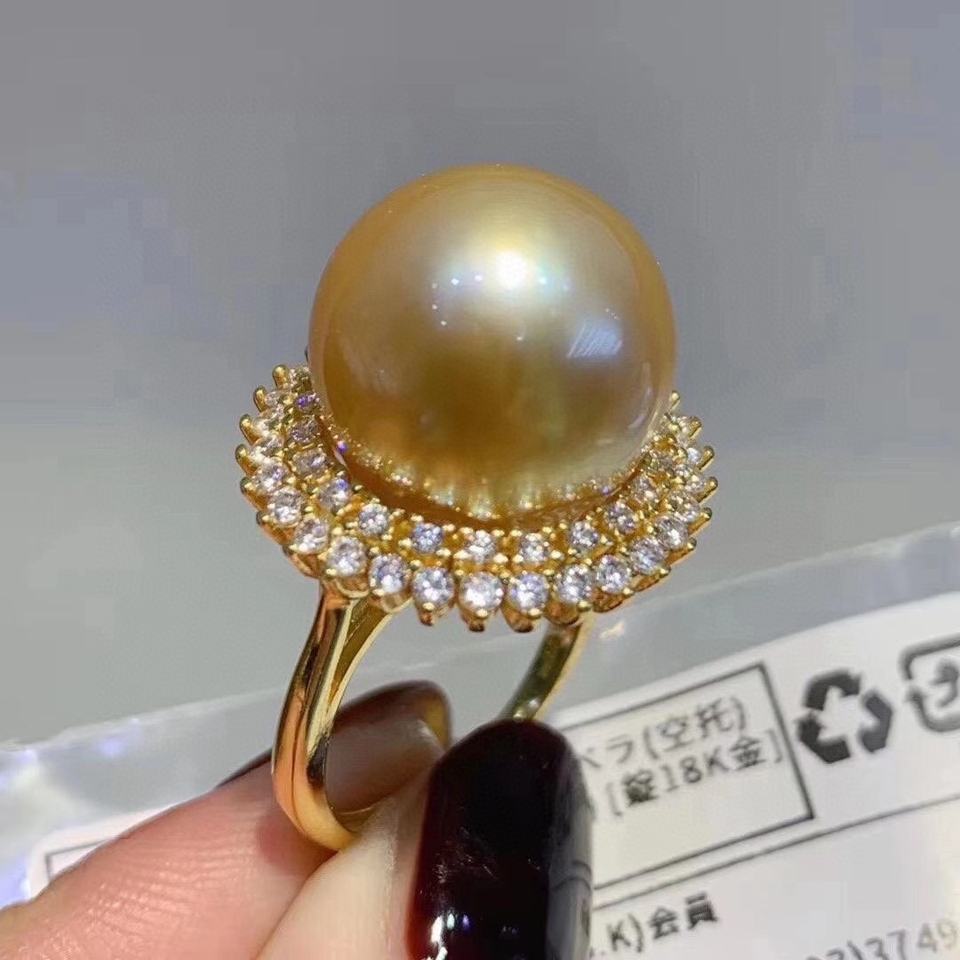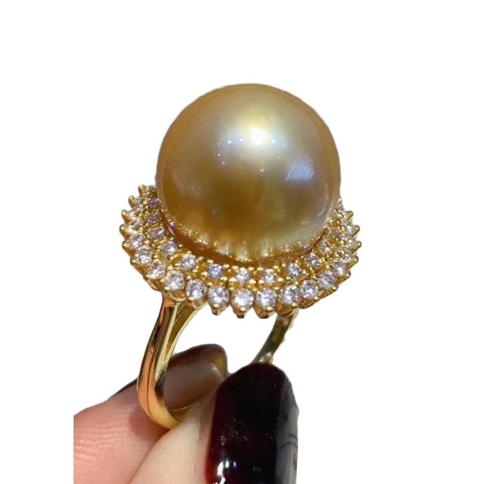 High Quality 925 Sterling Silver Queen Color Natural Gold Pearl Ring 12-13mm Round 9K Precision Craftsmanship Flap