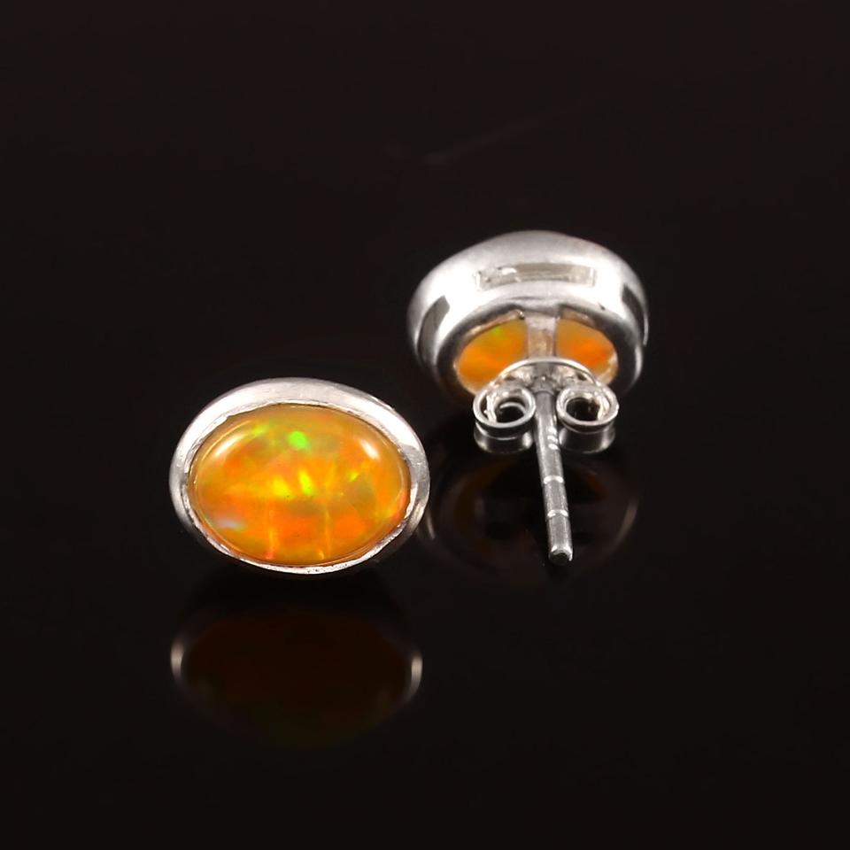 High Quality 925 Sterling Silver Women's Stud Earrings Oval Orange Dyed Opal with Pearl Elegant Designs Gold Jewelry