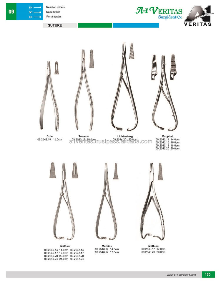 High Quality A-1 VERITAS Crile 15 cm Stainless Steel Needle Holders Reusable Surgical Instrument Set | Sutur Kitmedic Instrument
