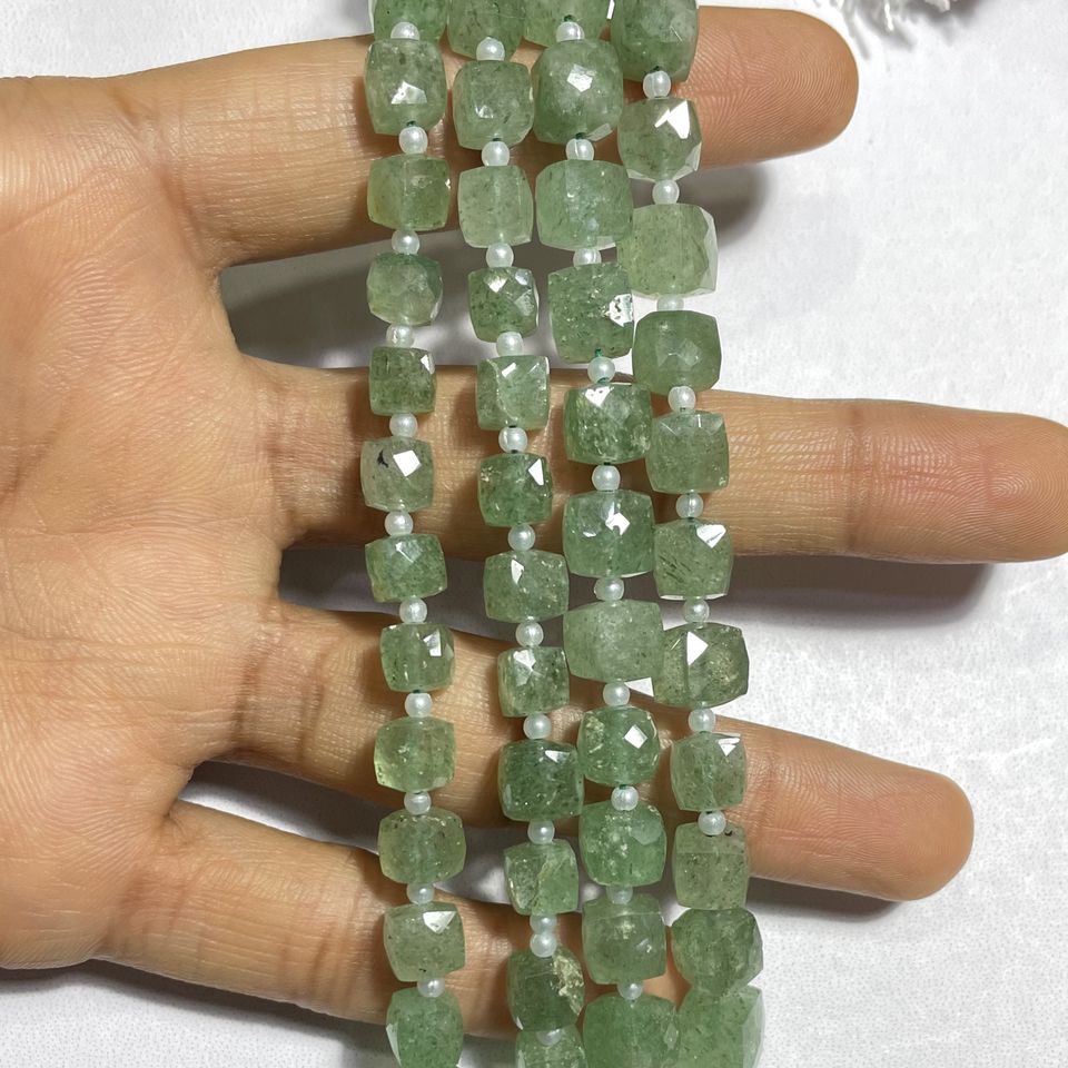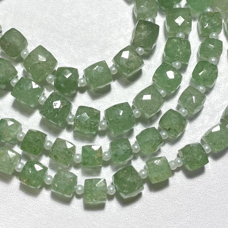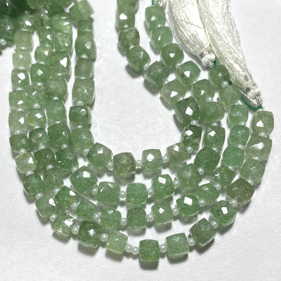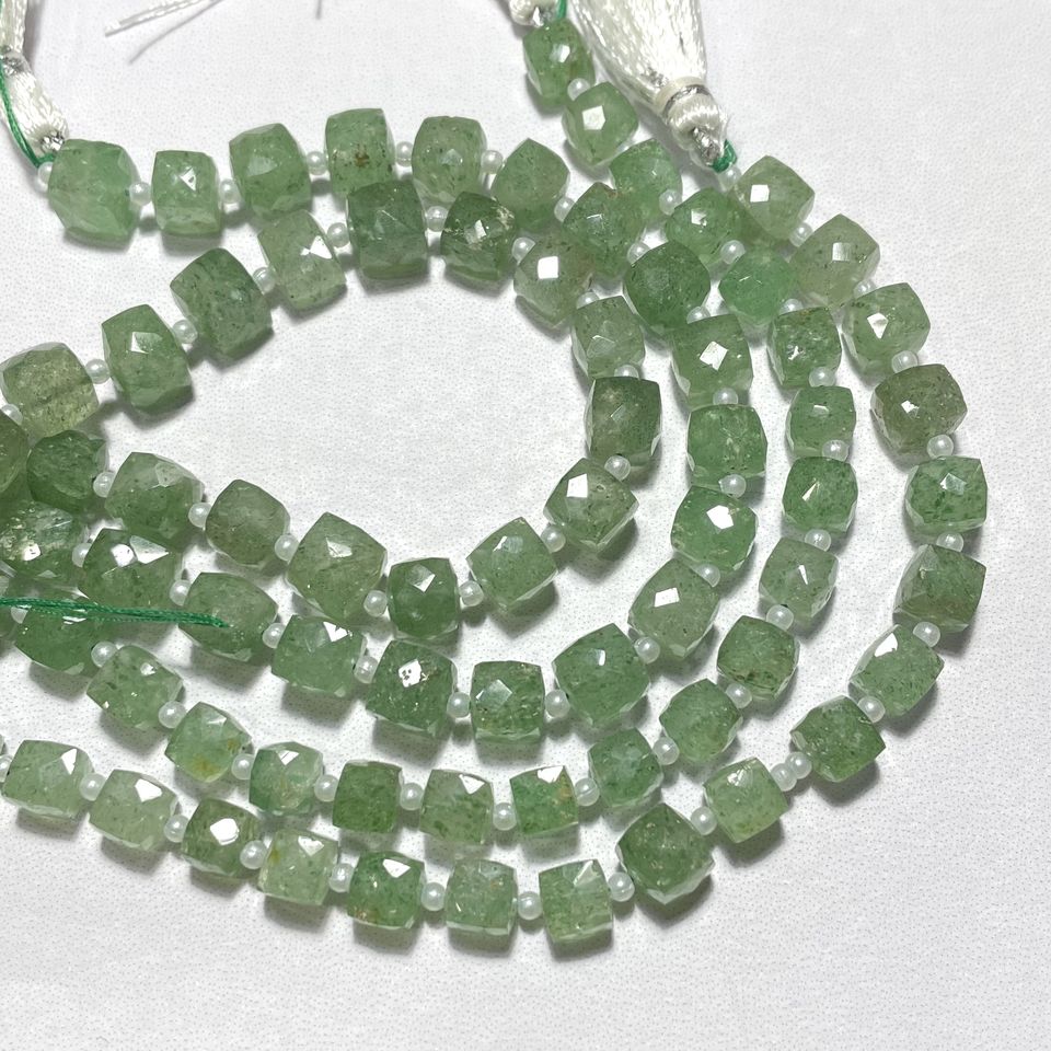 High Quality ASP GEMS 7-8MM Green Strawberry Quartz Stand Drill Faceted Box Shape Beads Calibrated Square Gemstone for Jewelry
