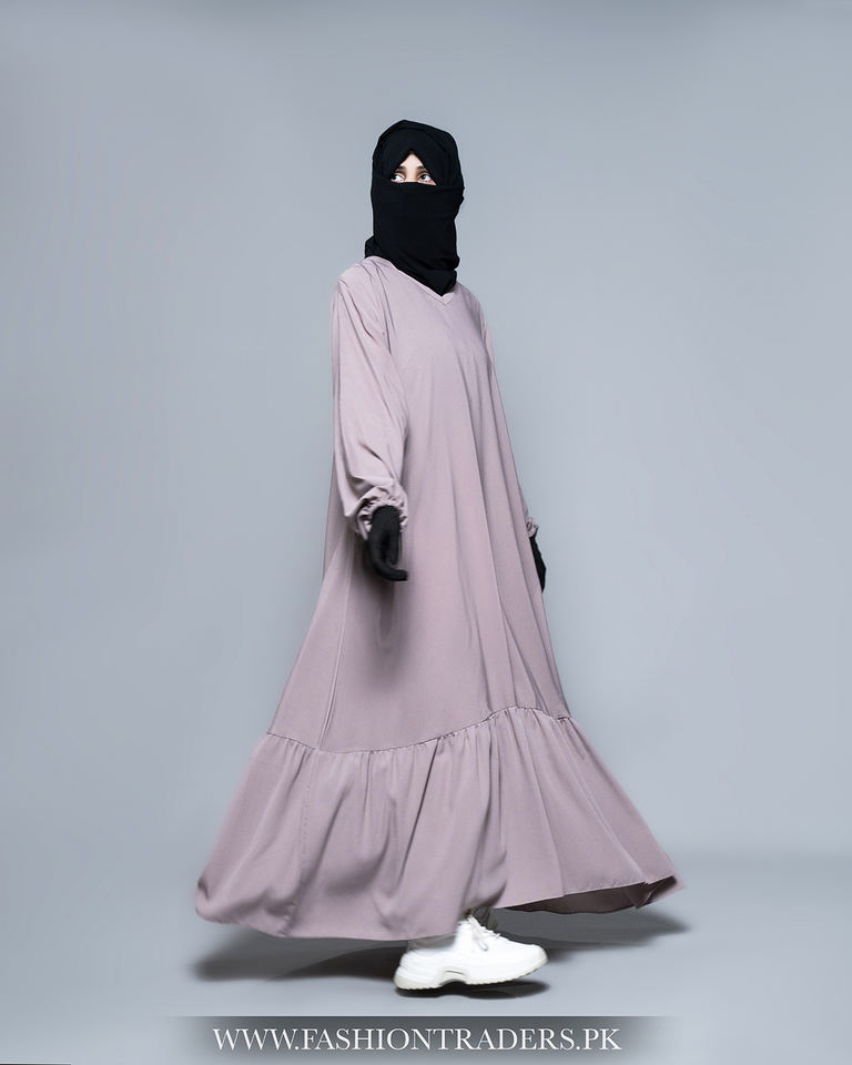 Product name:V Neck Ruffle Abaya with Elastic Sleeves