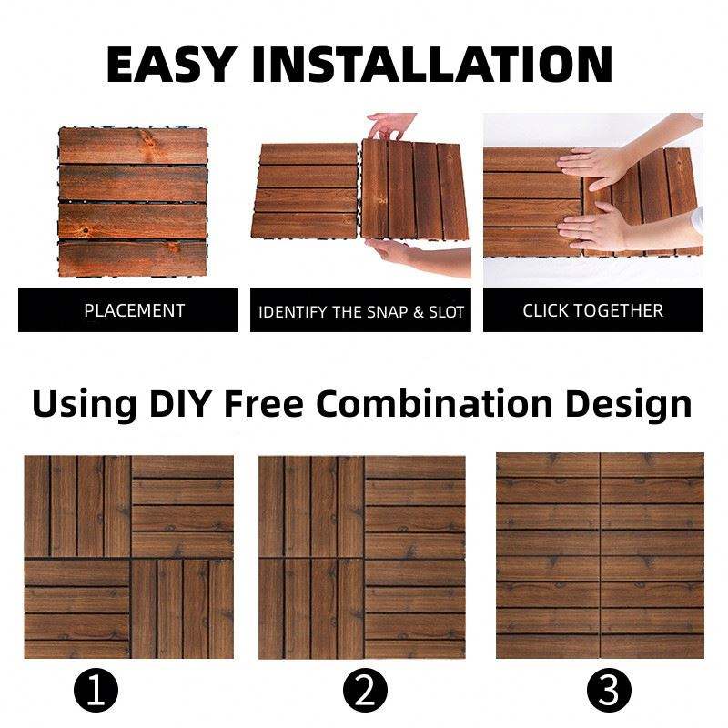 High Quality Acacia Decking Tiles 12 Slats 30 X 30 cm Plastic Decking Flooring Tiles Wooden Flooring Tiles for SHENGCHENG