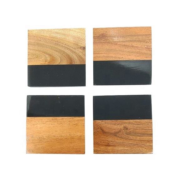 High Quality Acacia Wood and Epoxy Resin Coaster Customizable Table Accessories for Home Bar Decor Europe Style Mat