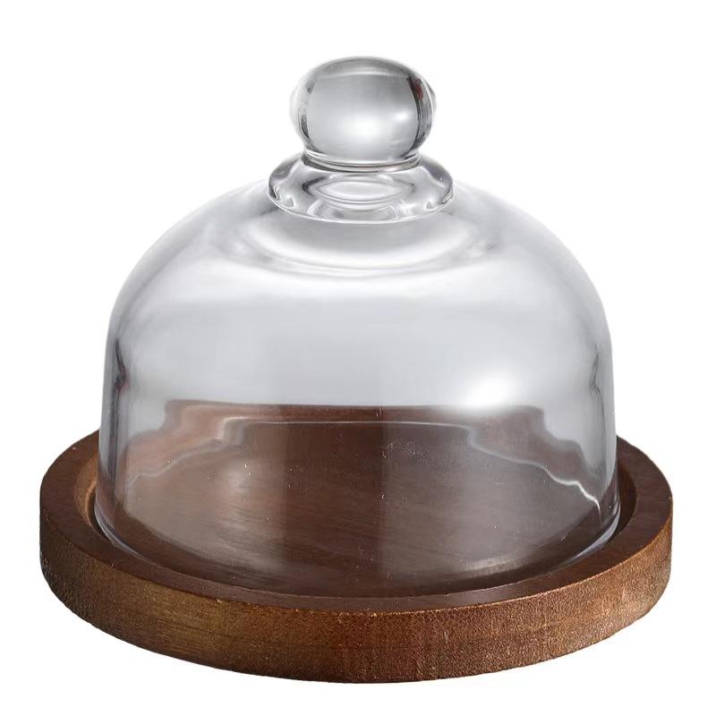 High Quality Acacia Wooden Crystal Kitchen Cake Stand Creative Transparent Dust-Proof Glass Cover Dome Disposable Weddings