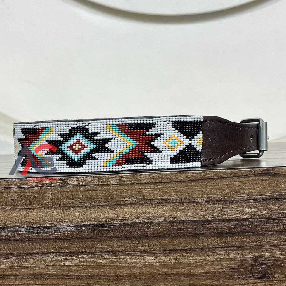 Hand Tooled Leather Beaded Padded Dog Collar