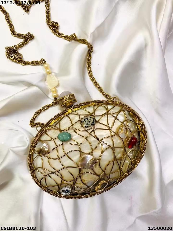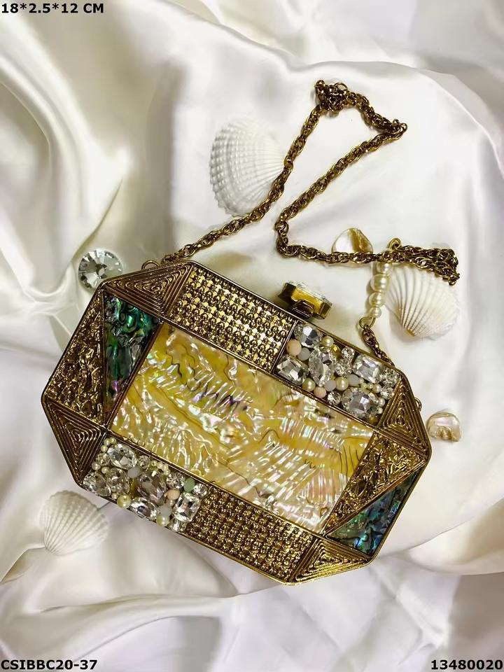 High-Quality Agate Stone & Resin Embellishment Clutch Bag Purse Brass Chain Unique Refined Embroidery Design Acrylic Clutch Bag