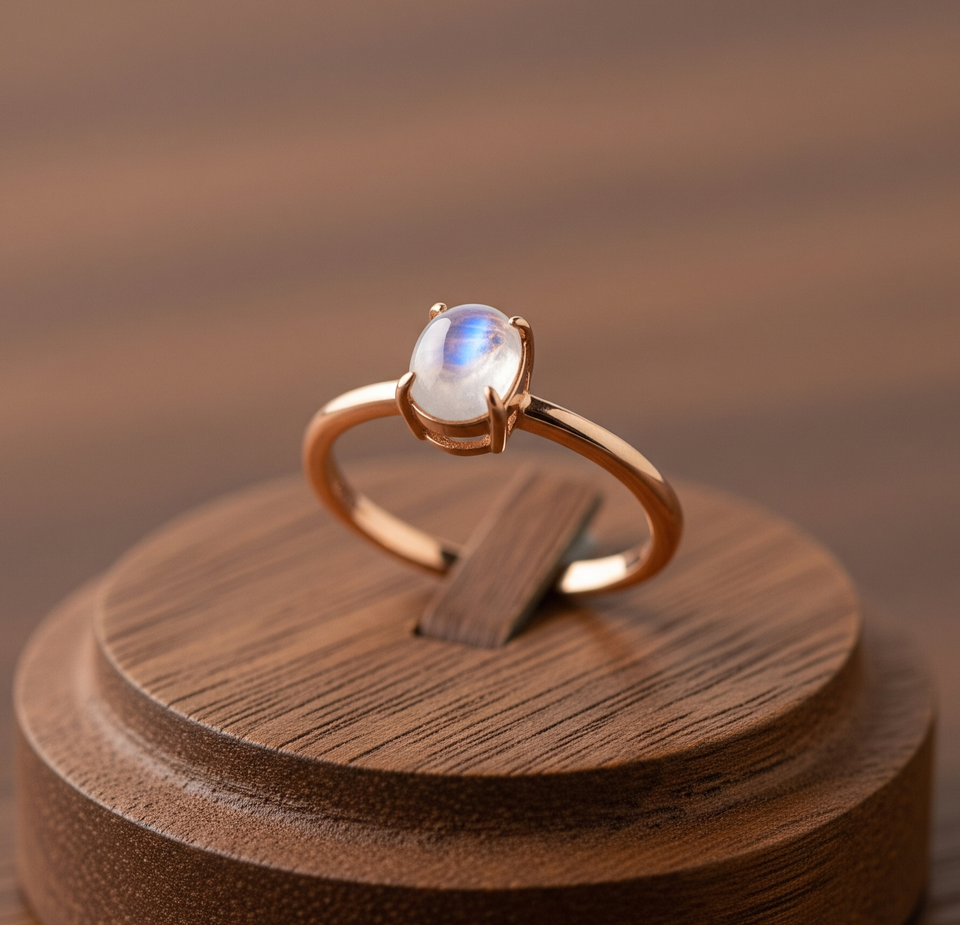 High Quality Alloy Fashion Ring Bezel Setting Moonstone Crystal Rose Gold Band Trendy Wedding Parties Gift Unisex
