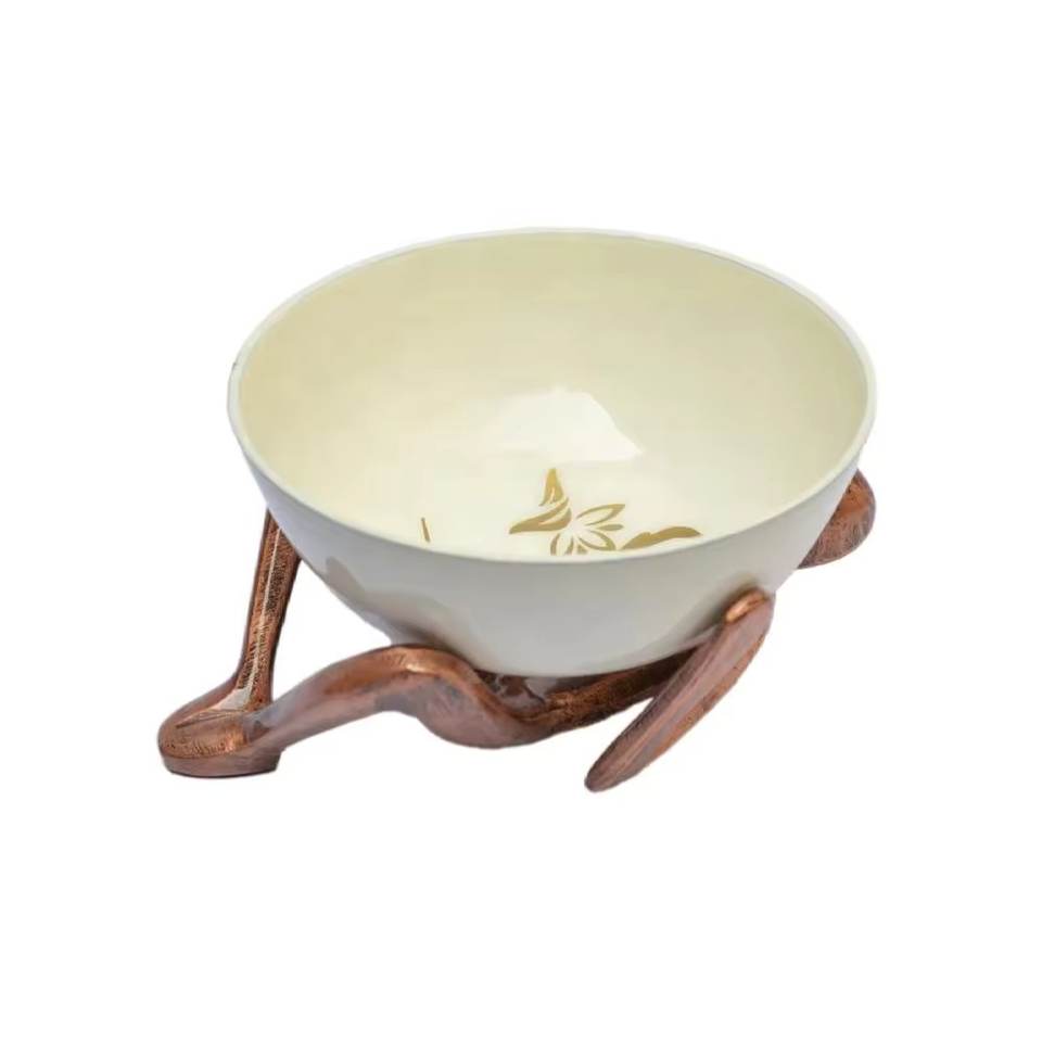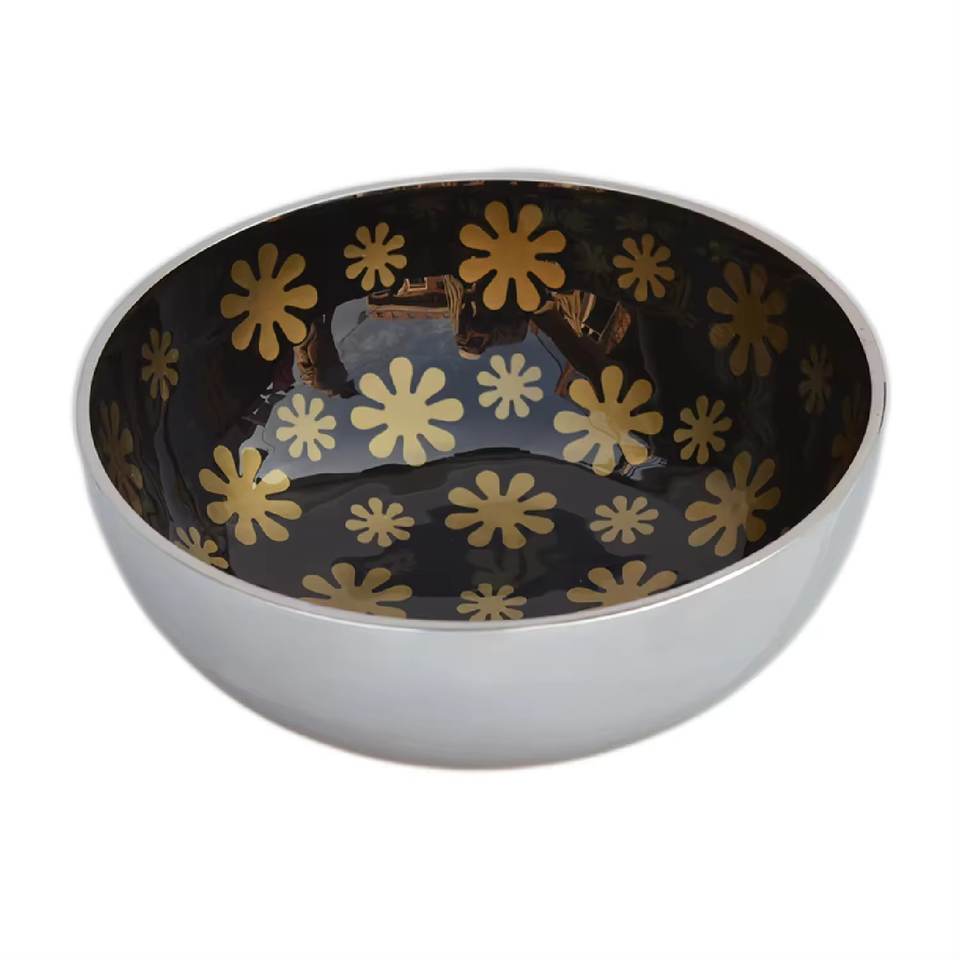 High Quality Aluminium Metal Food Bowl With Shiny Colored Enamel Finishing Flower Printing Design Multiple Used Bowls