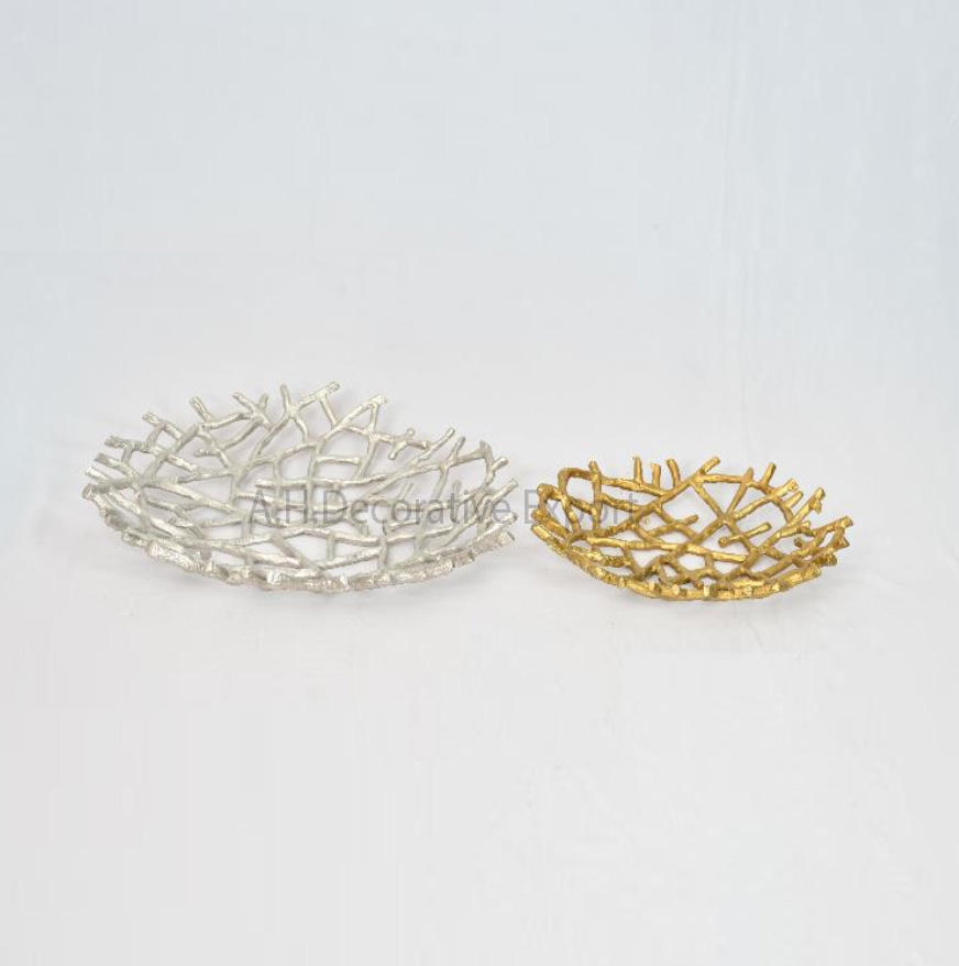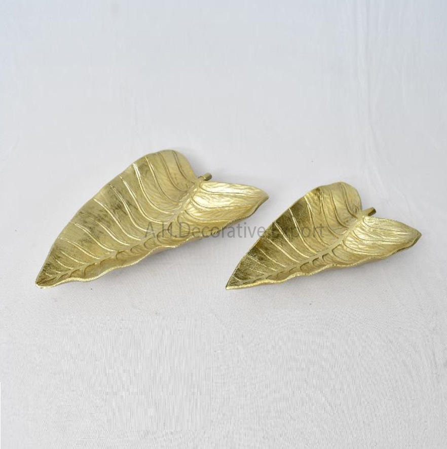High Quality Aluminum Dry Fruits Serving Bowl Handmade Designing Gold Finishing Leaf Shape Chocolates Serving Bowl