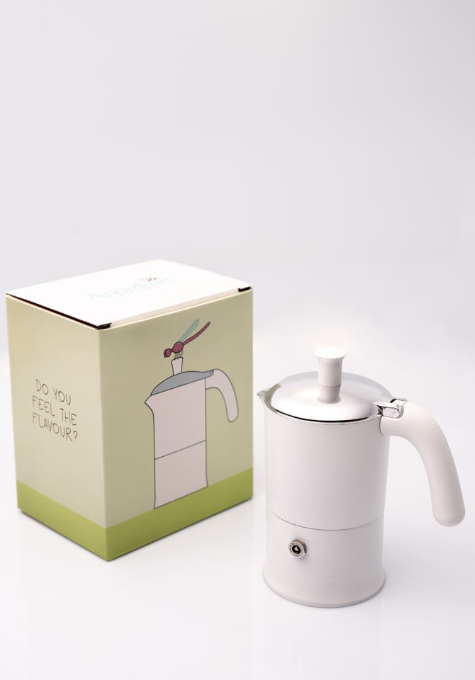 High Quality Aluminum Stovetop Espresso Machine Cafe Brewing Moka Pot 6 Cups For Daily Use Angelina Yellow/White