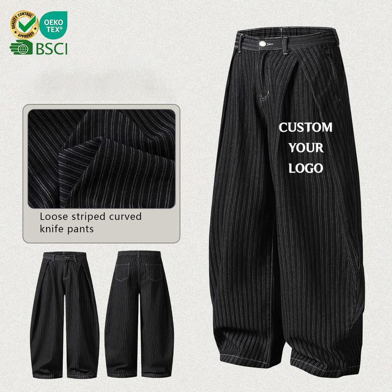 High Quality American High Street Fashion Black Solid Washed Wide Leg Canvas Jeans Men Women Loose Fit Curved Cut Vintage Pants