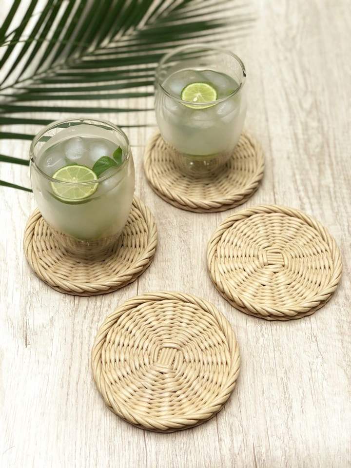 High Quality American Style round Handmade Rattan Coaster Classic Table Coaster for Dinner Home Decor Accessories
