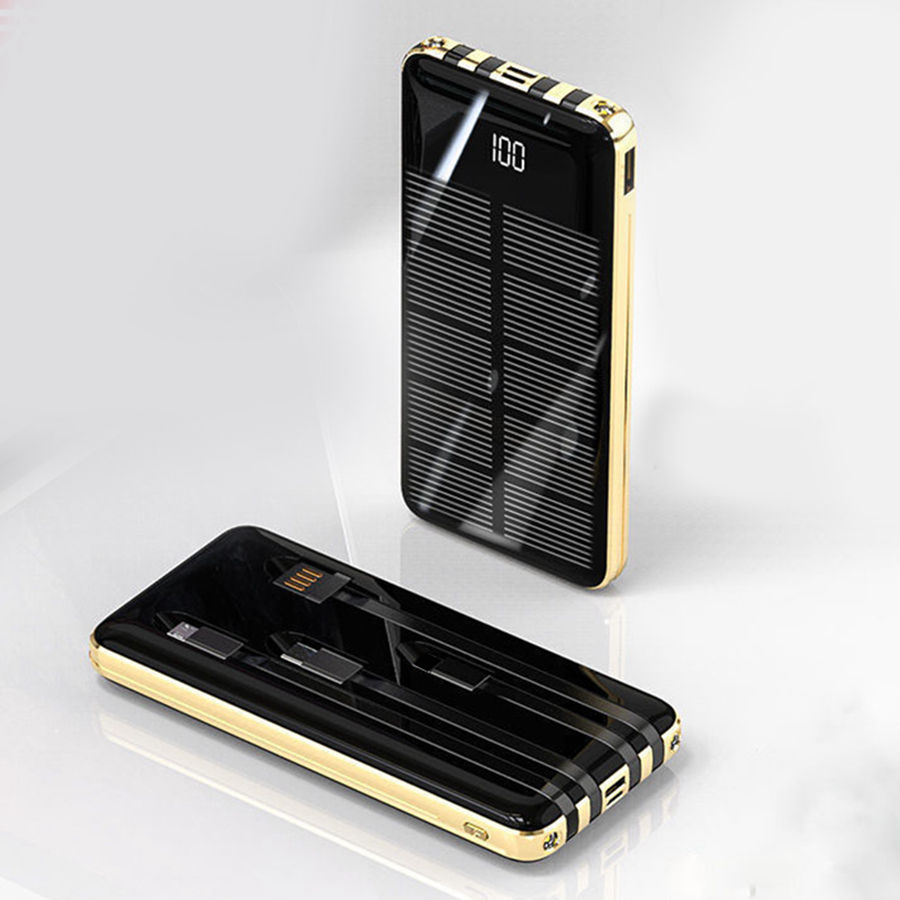 High Quality and Low Price Led Display Solar Power Bank Built in 4 Cable Universal Portable Power Bank