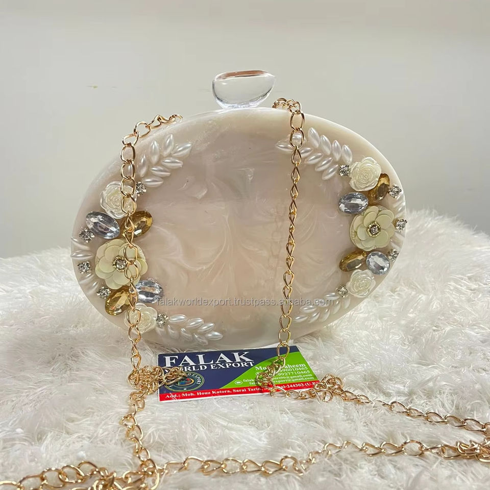 Falak World Export Women's Fashionable Resin Clutch Bag High Quality Unique Design with Metal Chin for Parties Wending Gifts