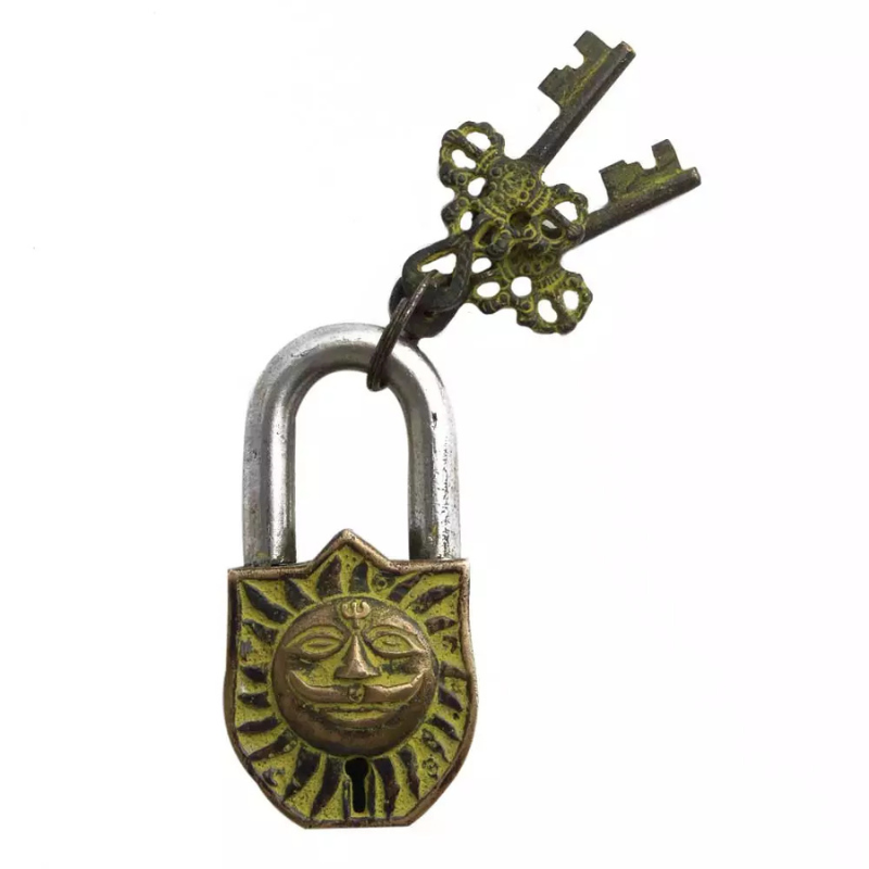 Antique Brass Pad Lock High Quality Key Unlock with Polished Finish & Waterproof Feature for Security Usage