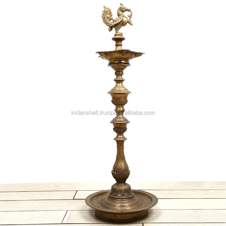 Product name:Golden Brass Oil Lamp with Peacock Design.