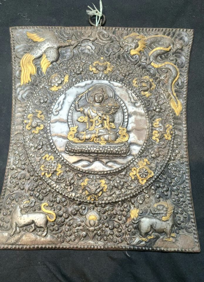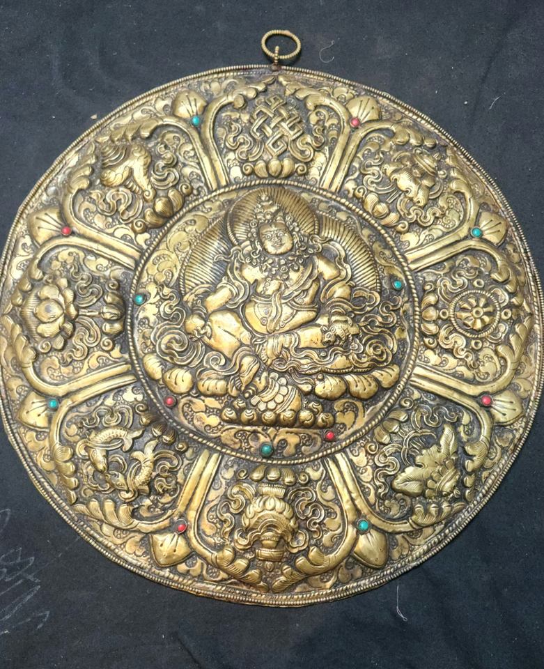 High Quality Antiqued Metal Craft Handmade Tibetan Copper Mandala Gold Finish Stone Studded Rudra Gems India Art Collectible
