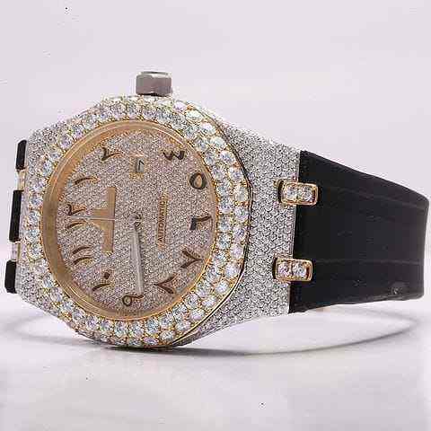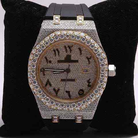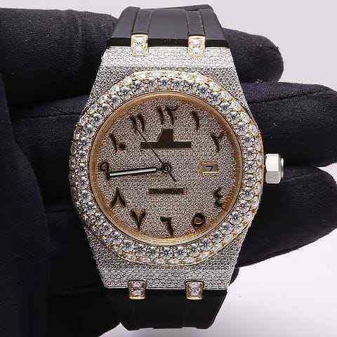 High Quality Arabic Dial Analog Mechanical Sport Watch Luxury Hip-Hop Style Iced Moissanite Diamond Stainless Steel 20mm Band