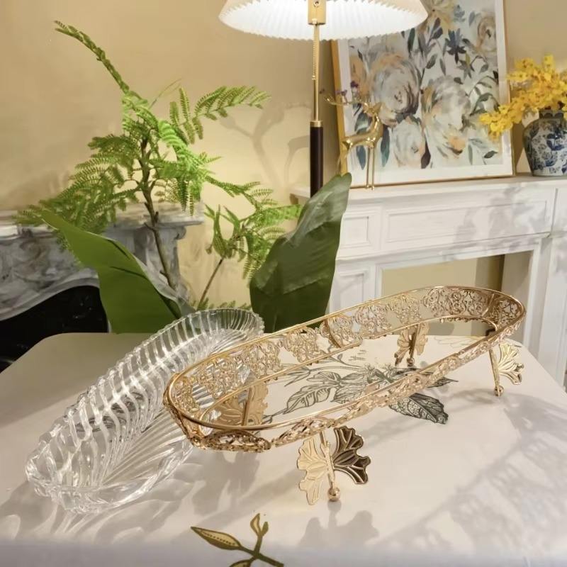 High Quality Artistic Crystal & Metal Large Bowl Decorative Tabletop Elegant Serving Dish for Dining Room and Living Space