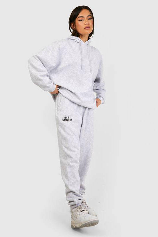 High Quality Ash Grey Women's Casual Plus Size Solid 2-Piece Breathable Fleece Hooded Tracksuit Set Hoodie Sweatpants