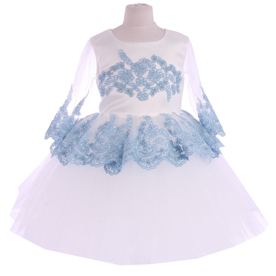 High Quality BEBEMEKAN Girls Baby Dress Custom Modern Laced Long Sleeve Midi Length Wedding Birthday Party Newborn Spring