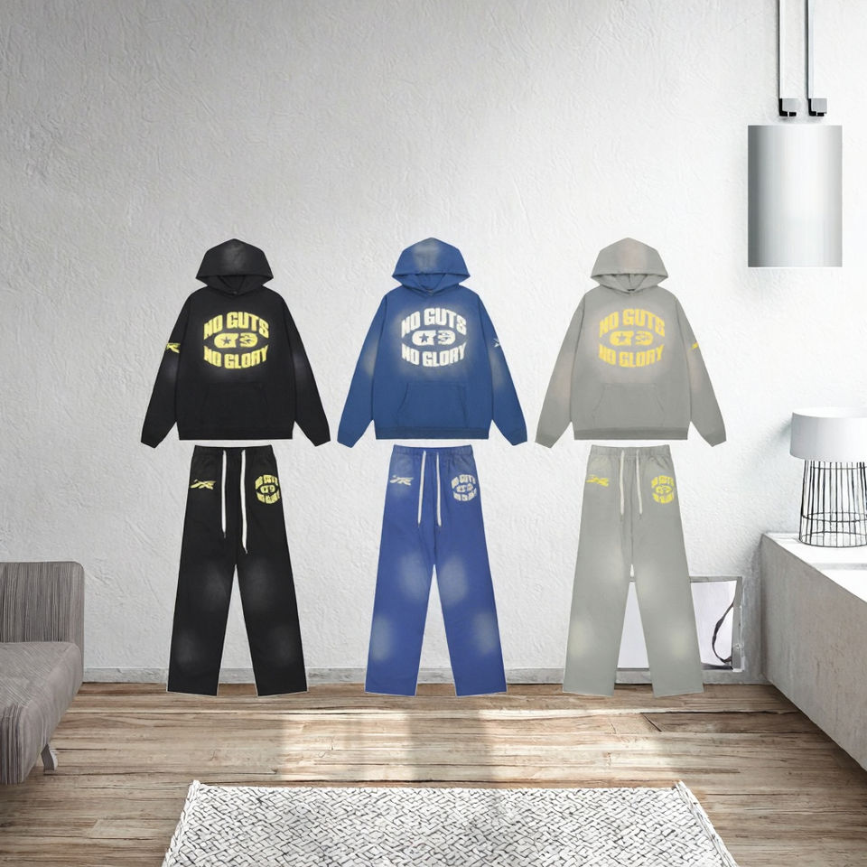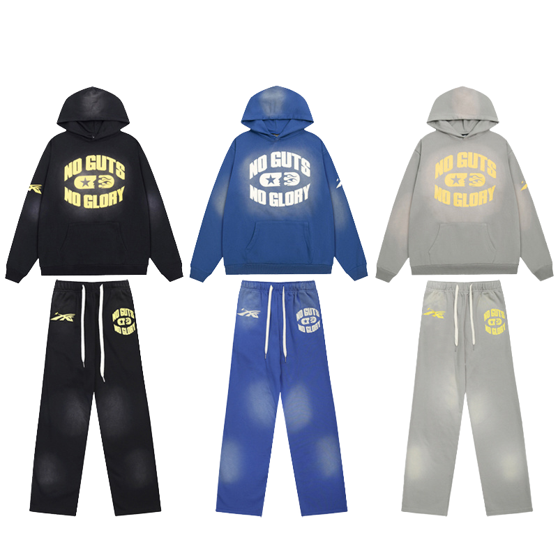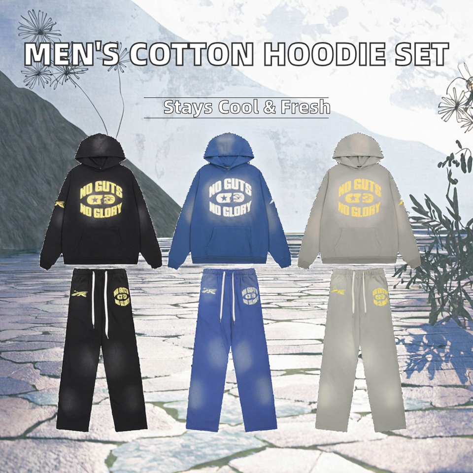 High Quality BIGAPE Men's Winter Casual Fleece Silk Screen Printed Breathable 100% Cotton 380g Sweatshirt Pant Trousers Set