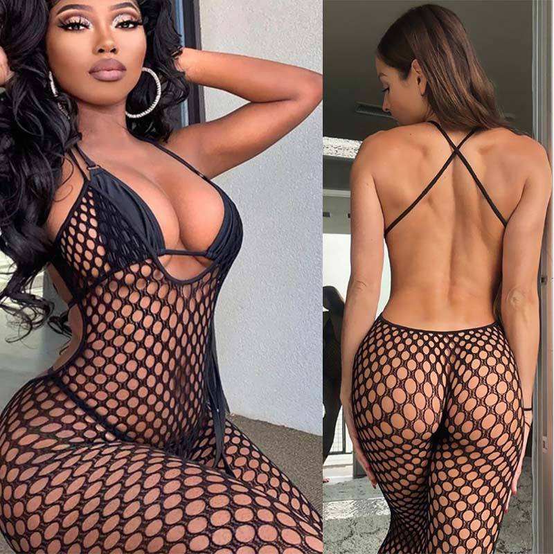 High Quality Backless Fishnet Bodystocking Perspective Sleeveless Bodysuit One Piece Sheer Bodystocking