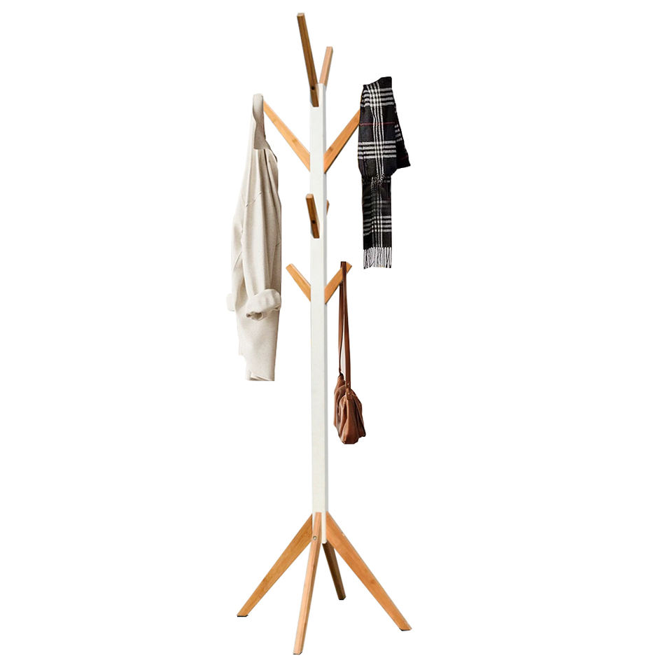 Bamboo Wood Farmhouse Design Hall Tree Coat Rack Shoe Rack with Hooks
