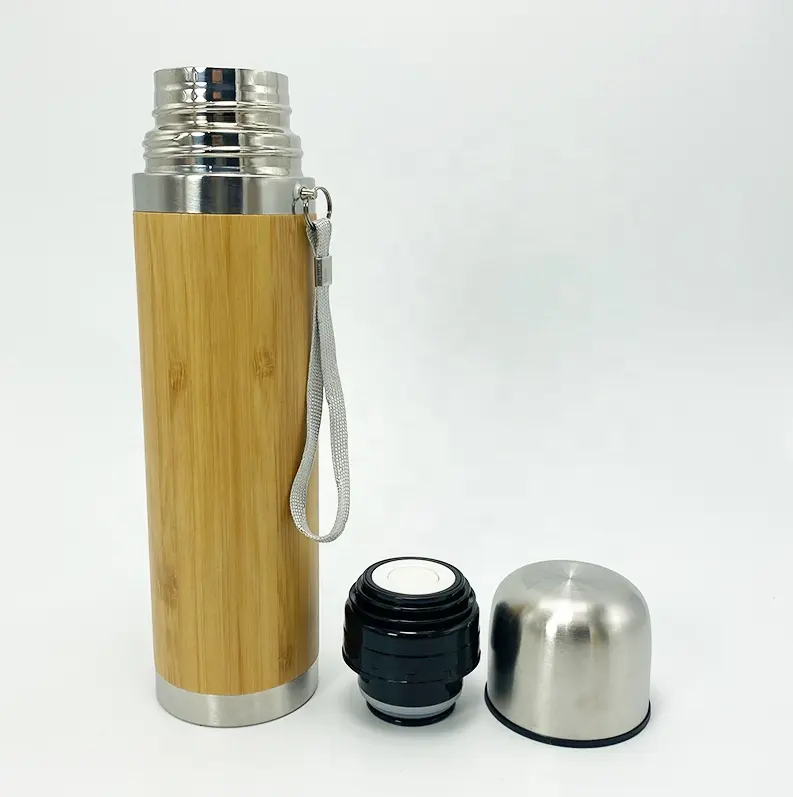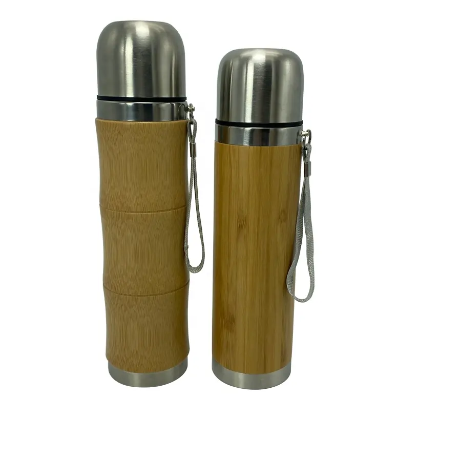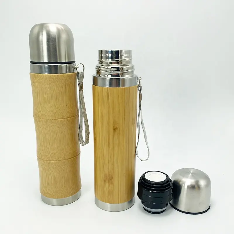 High Quality Bamboo Wooden Vacuum Insulated Heat Insulation Smart Bamboo Thermos Smart Water Bottle