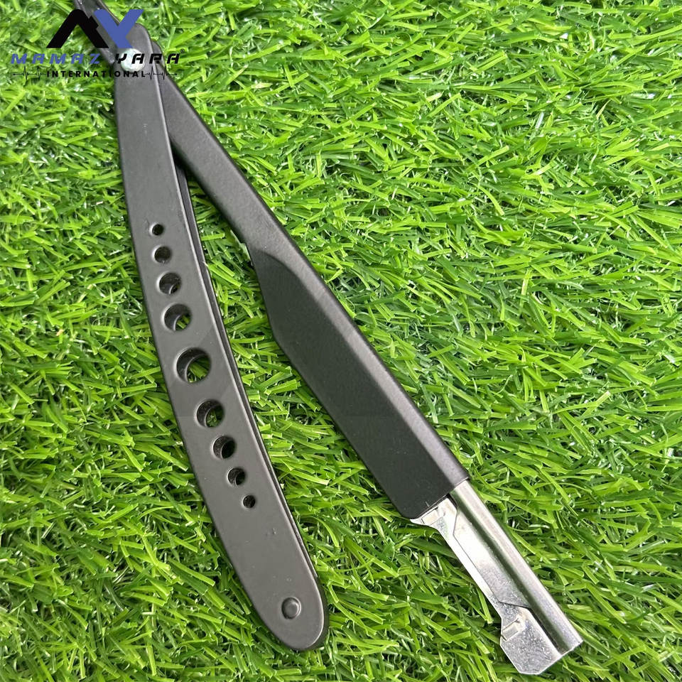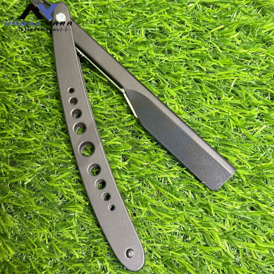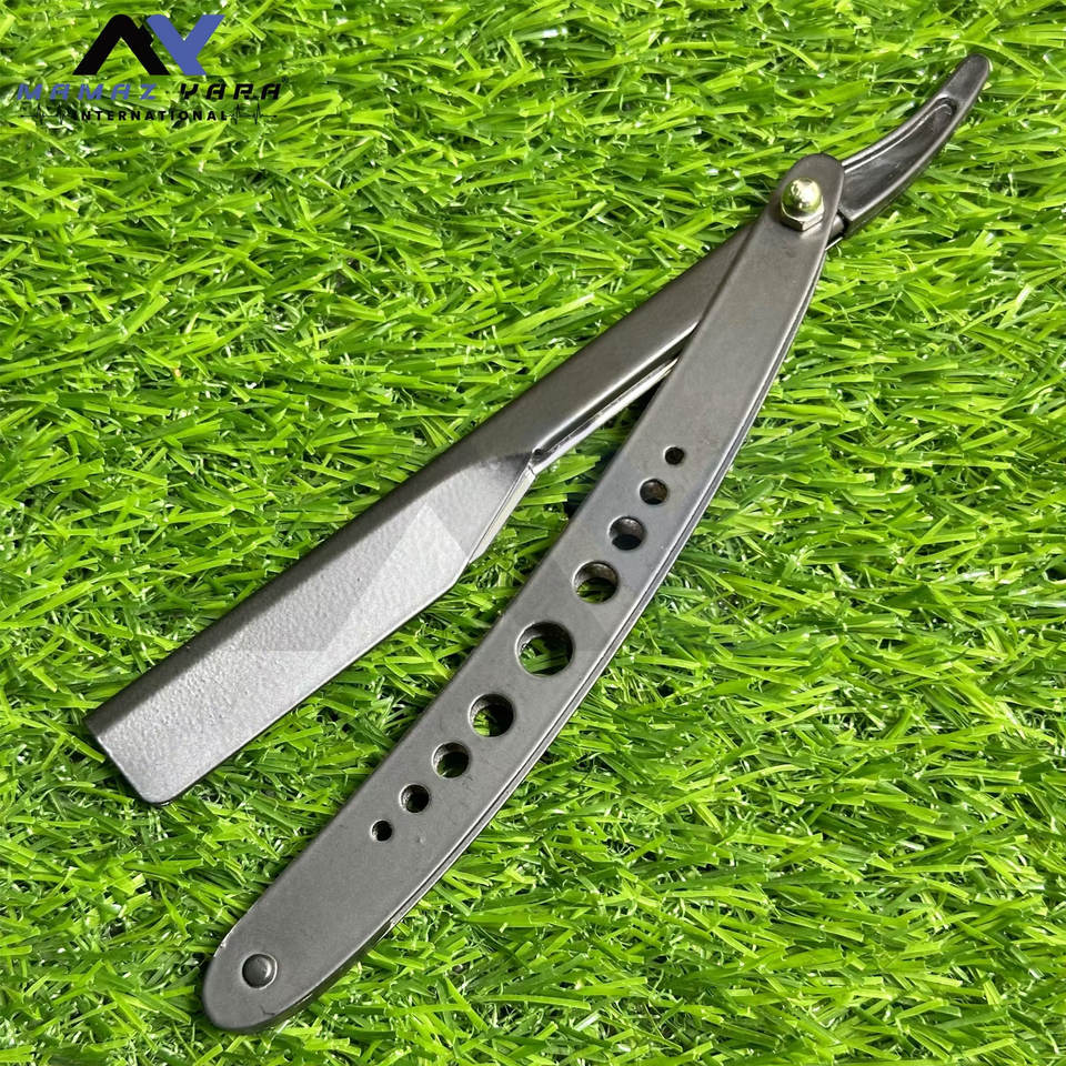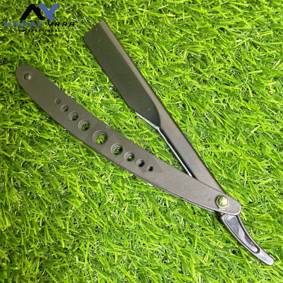 High Quality Barber Razors Custom Folding Straight Razor for Mens Wet Shaving Matte Black Hole-Design Handle Shaving Razors
