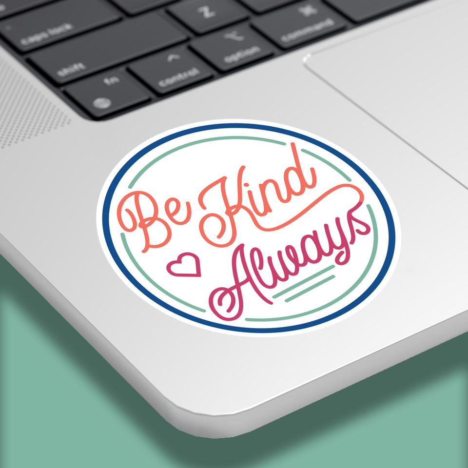 High Quality Be Kind Always | Laptop Decals | Die-Cut | 2x2 | Waterproof | Anti-UV | UV Varnishing | Promotional Gifts