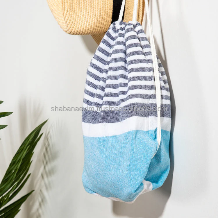 High Quality Beach Towels with Bag Personalized Beach Bags with Stripes Luxury Women Summer Fouta Bags